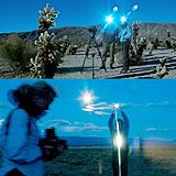 Hot temperatures pose special problems for cacti. Most leafy plants cool themselves during the day by opening their pores. The movement of water from stem to leaf to air keeps leaf temperatures from rising too high. Because their pores open only at night, cacti cannot take advantage of such transpirational cooling. They adapt to desert heat by internal mechanisms. Teddybear cholla, for instance, can withstand an air temperature of 138 degrees F. Most other plants would literally cook at this temperature, but teddybear cholla often rises 59 degrees F or more above the air temperature! |